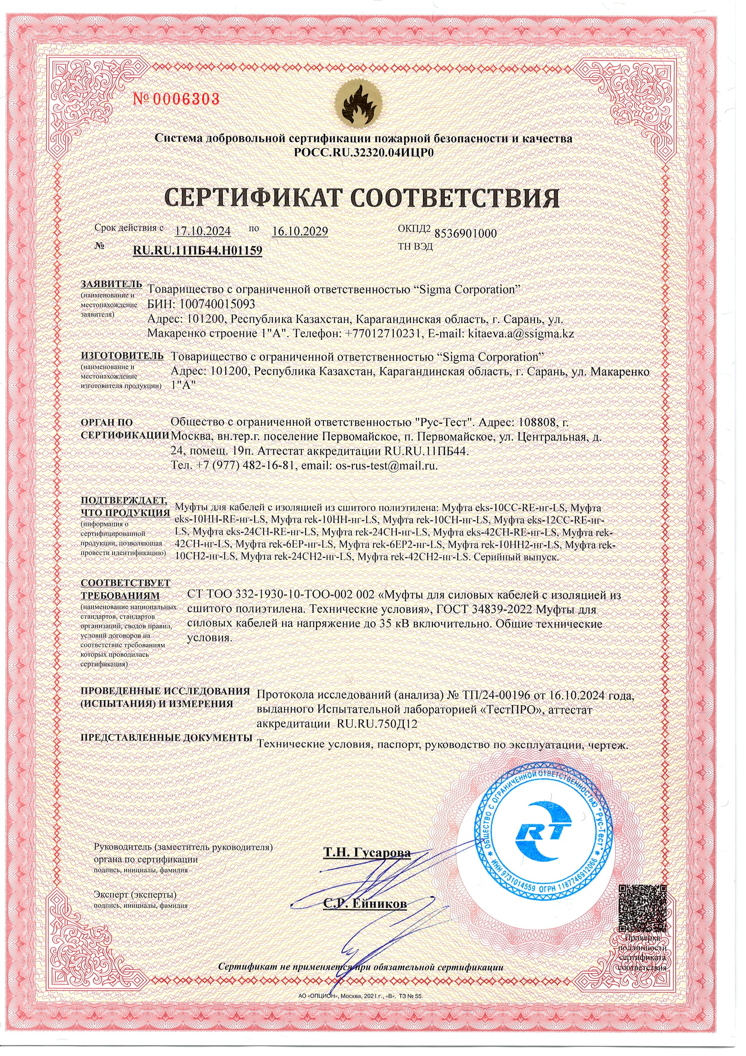 - При формировании заказа на муфты в исполнении «не поддерживающий горение» и «низкое дымо- и газовыделение» в наименовании добавляется аббревиатура «нг-LS». Пример наименования: «rek-42CH-1/1х50/120-нг-LS-M».