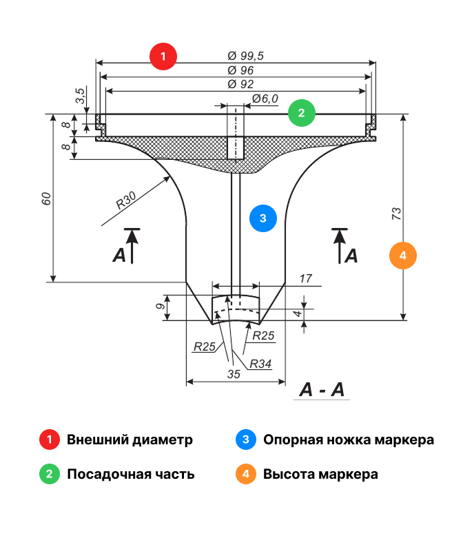 - ΠΠΈΠ°ΠΌΠ΅ΡΡ ΠΏΠΎΡΠ°Π΄ΠΎΡΠ½ΠΎΠΉ ΡΠ°ΡΡΠΈ: 92 ΠΌΠΌ