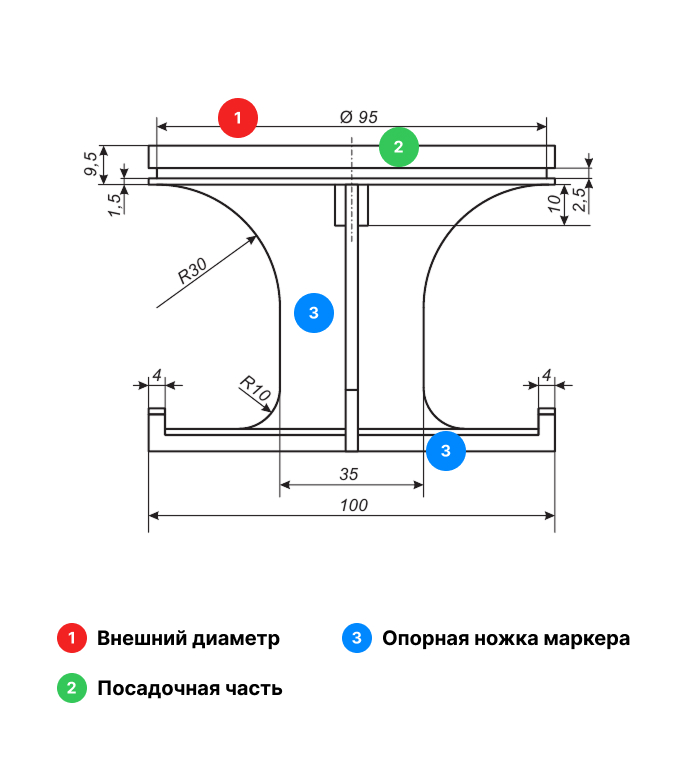 - ΠΠ»ΠΈΠ½Π° ΠΎΠΏΠΎΡΠ½ΠΎΠΉ ΡΠ°ΡΡΠΈ: 100 ΠΌΠΌ